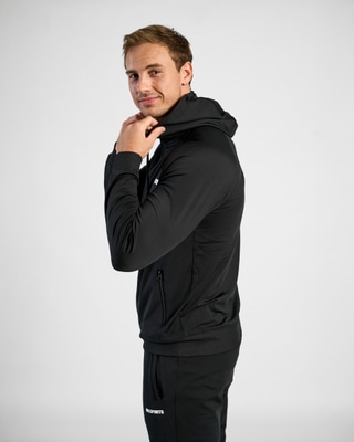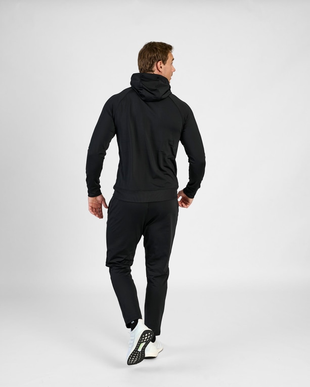 Treenihuppari miehille samasta mukavasta materiaalista kuin Loose Pats -housut. Kevyt ja pehmeä materiaali, joka hengittää ja siirtää kosteutta pois iholta. Tiukempi istuvuus, vetoketju edessä sekä korkea kaulus, jossa vetoketju nousee ylös asti. Vetoketjulliset etutaskut, joissa puhelin tai avaimet voidaan säilyttää turvallisesti.