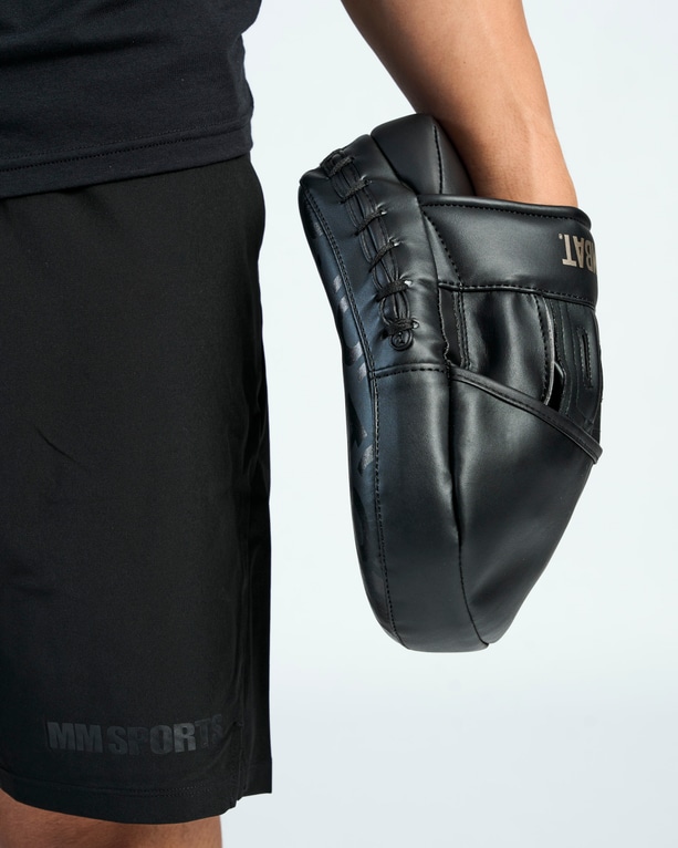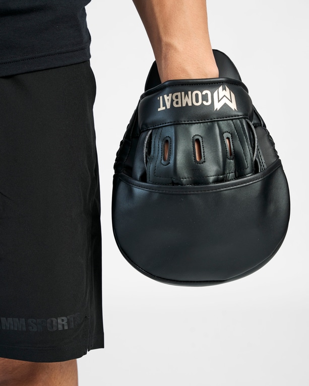 MM Combat Focus Mitts Black/Gold – kestävät ja mukavat pistarit keinonahasta, suunniteltu tehokkaaseen harjoitteluun mukavuutta ja vakautta unohtamatta. Myydään pareittain, yhdessä koossa, joka sopii useimmille valmentajille ja urheilijoille.