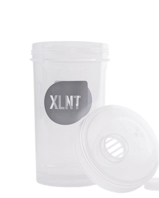 Uutta tässä shakerissa on, että pullossa on ritilä pullonaukossa, joka estää kokkareiden muodostumisen sekoituksessa. Shakerilla on myös pyöristetty pohja vähentääkseen jauheen tarttumisen riskiä pohjan kulmiin.