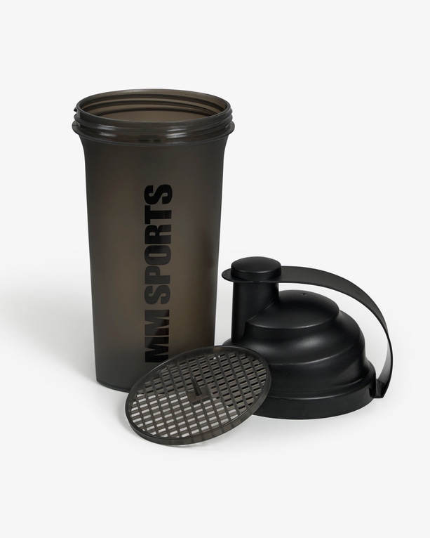 MM Sports Shaker -ravistimessa on osittain läpinäkyvä pullo, jonka ansiosta näet sisällön helposti. Pullon tilavuus on 700 ml ja siinä on selkeä mitta-asteikko, joka helpottaa annostelua. MM Sports Shaker -ravistimessa on musta vesitiivis kierrekorkki, joten voit aina pakata nesteen samaan tilaan treenivaatteiden kanssa. Irrotettava ritilä, joka helpottaa jauheen sekoittamista ja estää paakkujen muodostumisen.