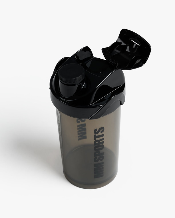 MM Sports Shaker Mobile Stand on puoliläpinäkyvä shaker, johon mahtuu 700 ml ja siinä on selkeät määrät, jotka helpottavat oikeaa annostelua. MM Sports Shaker on tiiviisti sulkeutuva kierrekorkki, joten voit olla varma, jotta se ei vuoda.