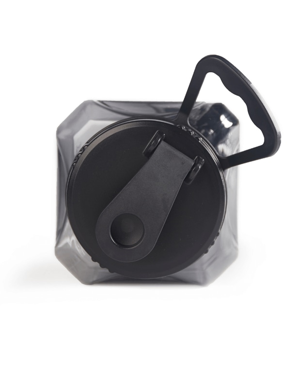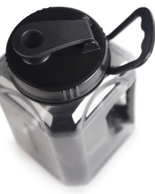Iso neliskulmainen juomapullo, jonka tilavuus on 2,4 litraa. Pullossa on iso suuaukko ja kätevä kantokahva.