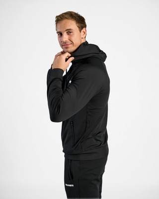 Treenihuppari miehille samasta mukavasta materiaalista kuin Loose Pats -housut. Kevyt ja pehmeä materiaali, joka hengittää ja siirtää kosteutta pois iholta. Tiukempi istuvuus, vetoketju edessä sekä korkea kaulus, jossa vetoketju nousee ylös asti. Vetoketjulliset etutaskut, joissa puhelin tai avaimet voidaan säilyttää turvallisesti.