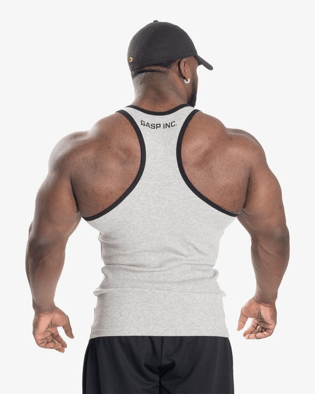 GASP Ribbed T Back on treenitoppi, joka on tehty kovaan harjoitteluun ja korostamaan kehon muotoja. Istuva leikkaus ja klassinen T back malli tuntuvat kevyeltä mutta kestävät kovaa käyttöä.