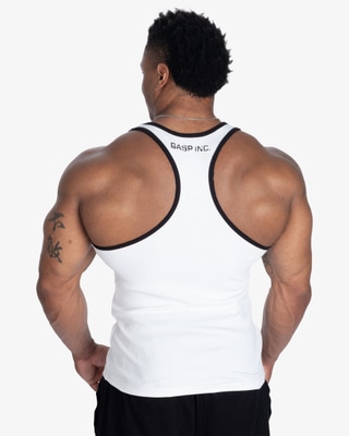 GASP Ribbed T Back on treenitoppi, joka on tehty kovaan harjoitteluun ja korostamaan kehon muotoja. Istuva leikkaus ja klassinen T back malli tuntuvat kevyeltä mutta kestävät kovaa käyttöä.