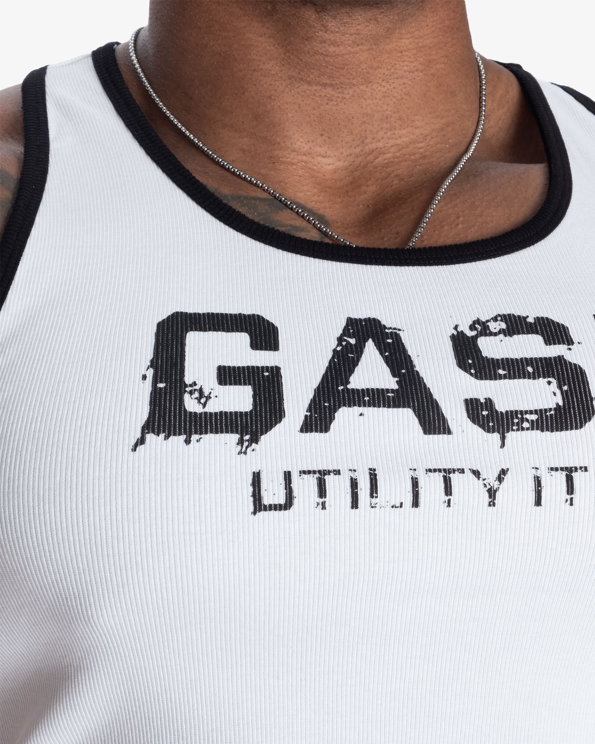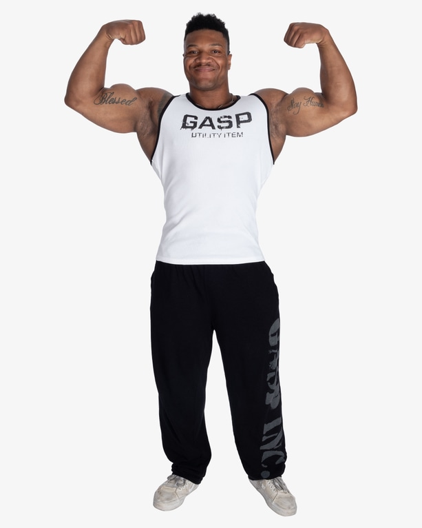 Ribattu puuvillan ja lycran sekoite tarjoaa joustavan ja tukevan istuvuuden, joka pysyy paikallaan myös intensiivisissä treeneissä ja useiden pesujen jälkeen. Raakareunaiset yksityiskohdat ja selkeät GASP painatukset rinnassa ja niskassa tuovat asennetta ja klassista hardcore tyyliä.