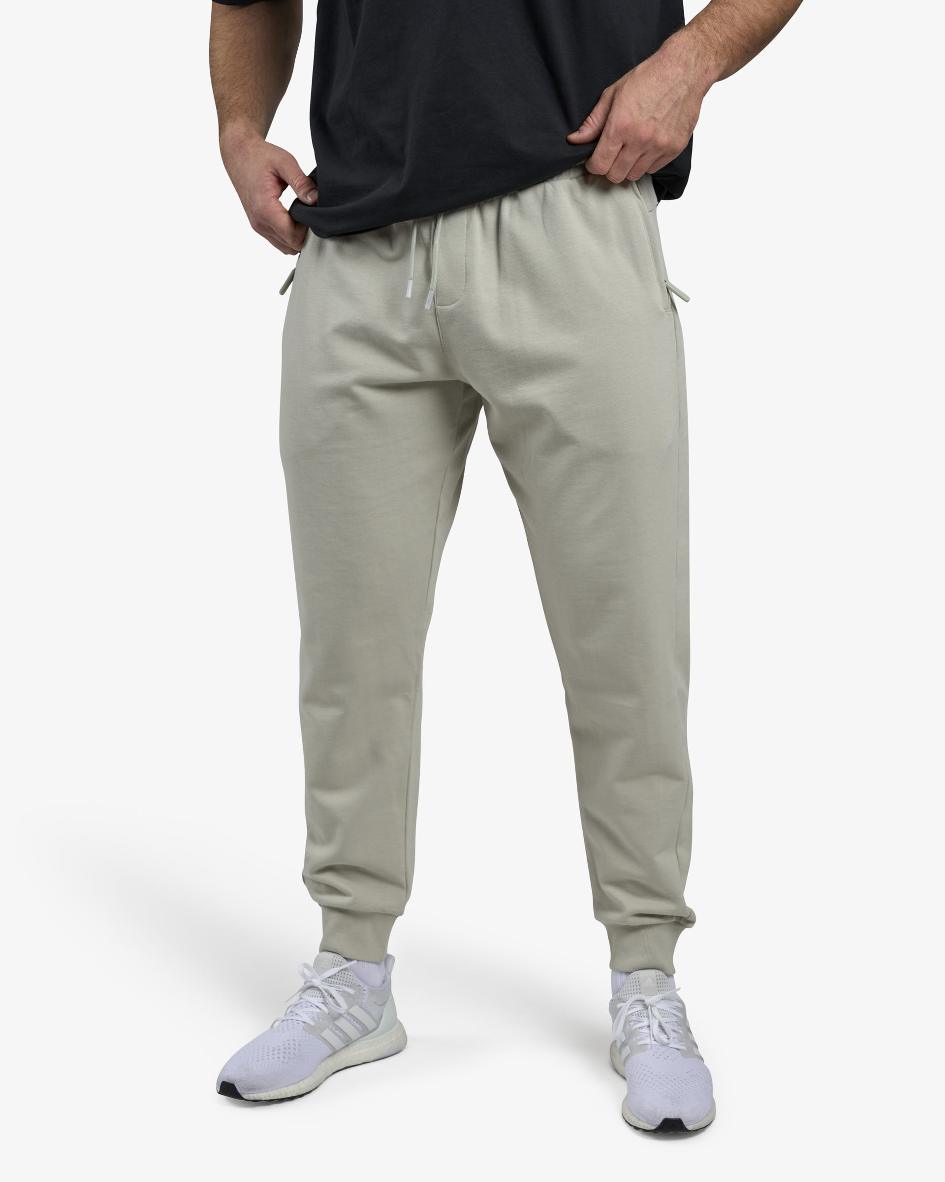 Sivutaskuissa ja takana on vetoketjut – tärkeimmät tavarat pysyvät mukana myös liikkeessä. Tapered-malli ja resorit lahkeissa antavat sporttisen ilmeen ja pitävät housut paikoillaan treenin ajan.