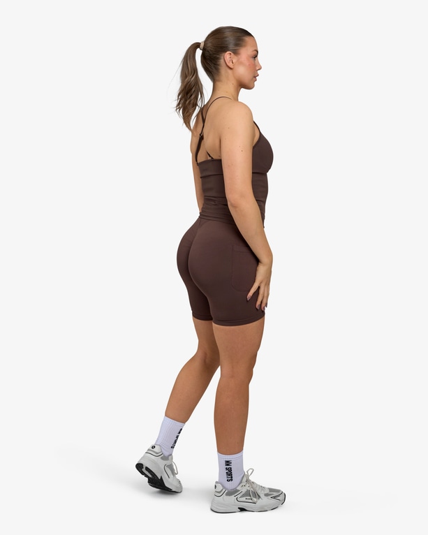 MM Sports Seamless Biker Tights on lyhyempi versio suosituista treenitrikoistamme, suunniteltu tarjoamaan sama imarteleva istuvuus ja mukavuus kevyemmässä muodossa. Materiaali mukautuu kehon mukaan ja korostaa muotoja luonnollisesti. Korkea vyötärö antaa tukea ja vakautta, samalla kun joustava rakenne takaa mukavuuden koko harjoituksen ajan.