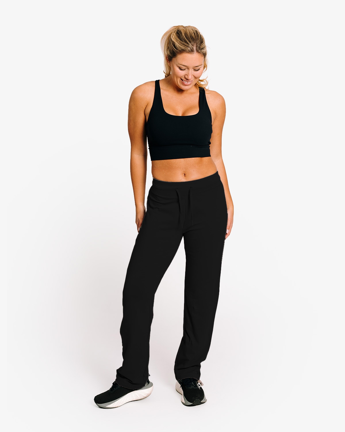 Keveät ja hengittävät jerseyhousut, joissa on suora leikkaus ja matala vyötärö. Valmistettu pehmeästä puuvillasekoitteesta (92% puuvillaa, 8% elastaania), joka tuntuu miellyttävältä ja joustavalta. Housuissa on tyylikäs, taskuton muotoilu ja säädettävä nyöri lahkeensuissa, jolloin voit valita haluatko suoran vai kapeamman ilmeen. Täydelliset salille tai arkeen rennon urheilulliseen tyyliin.