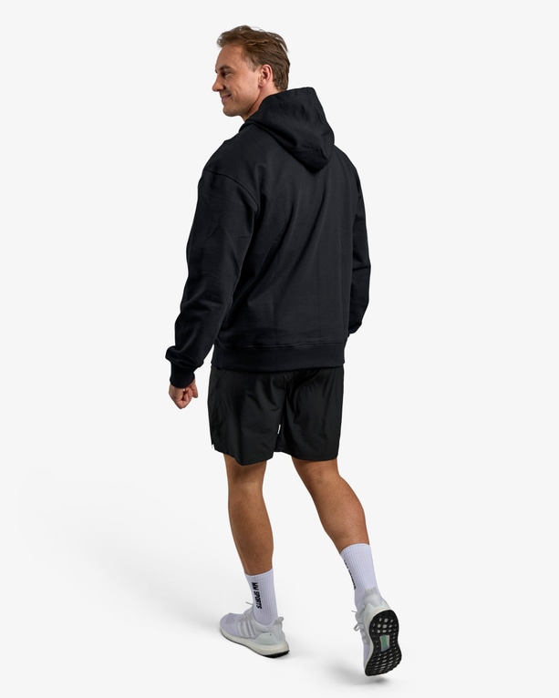 Huppari, jossa on raskas ja tukeva materiaali, mutta joka ei silti tunnu liian painavalta. Rento oversized-istuvuus ja harjaamaton sisäpinta tekevät siitä erityisen mukavan päällä – täydellinen lämmittelyyn tai treenin taukoihin.
