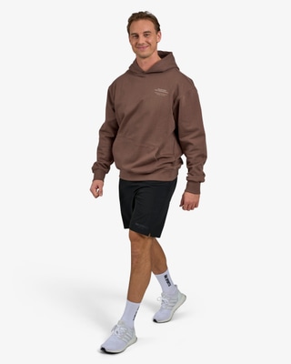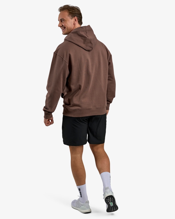 Huppari, jossa on raskas ja tukeva materiaali, mutta joka ei silti tunnu liian painavalta. Rento oversized-istuvuus ja harjaamaton sisäpinta tekevät siitä erityisen mukavan päällä – täydellinen lämmittelyyn tai treenin taukoihin.