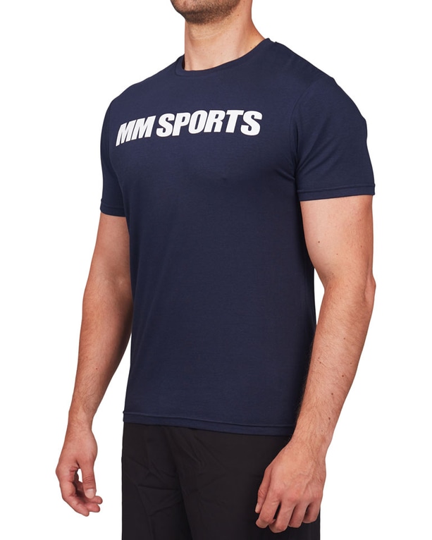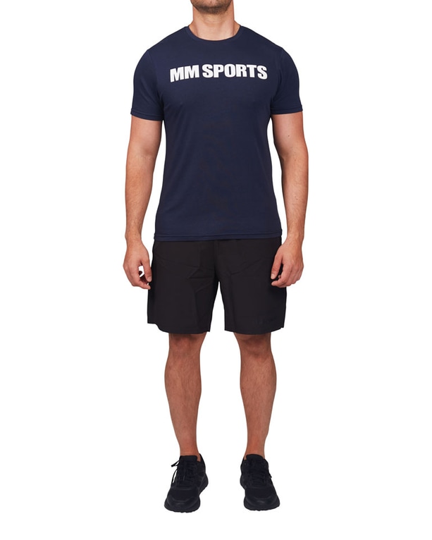 T-paita, jossa on rento tyyli ja istuvuus. T-paidan muoto on suunniteltu korostamaan ylävartaloa, mikä tekee siitä optimaalisen treenin aikana, mutta se sopii tietenkin myös jokapäiväiseen käyttöön. Musta ja tyylikäs MM Sports -logo edessä.
