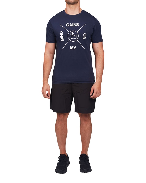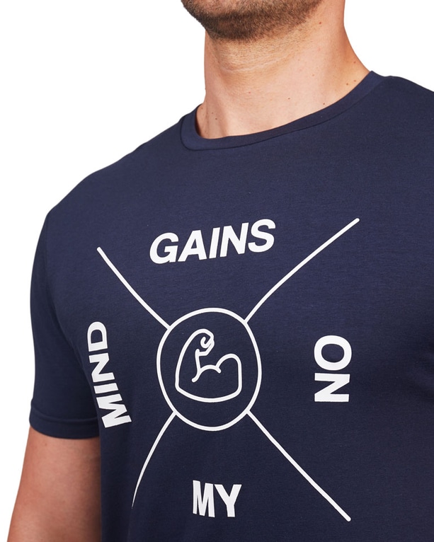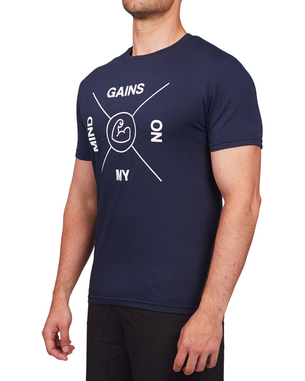 Treeni-t-paita, josta taatusti tulee uusi suosikkisi treeneihin ja joka auttaa sinua suoriutumaan parhaimmillasi. Materiaali pitää sinut viileänä koko treenin ajan ja tuntuu pehmeältä ja erittäin mukavalta vasten ihoa. Urheilullinen ja imarteleva istuvuus, joka istuu tiukasti harteista, rintakehästä ja käsivarsista. Erikoispainatus rinnassa tekstillä Gains on my mind.