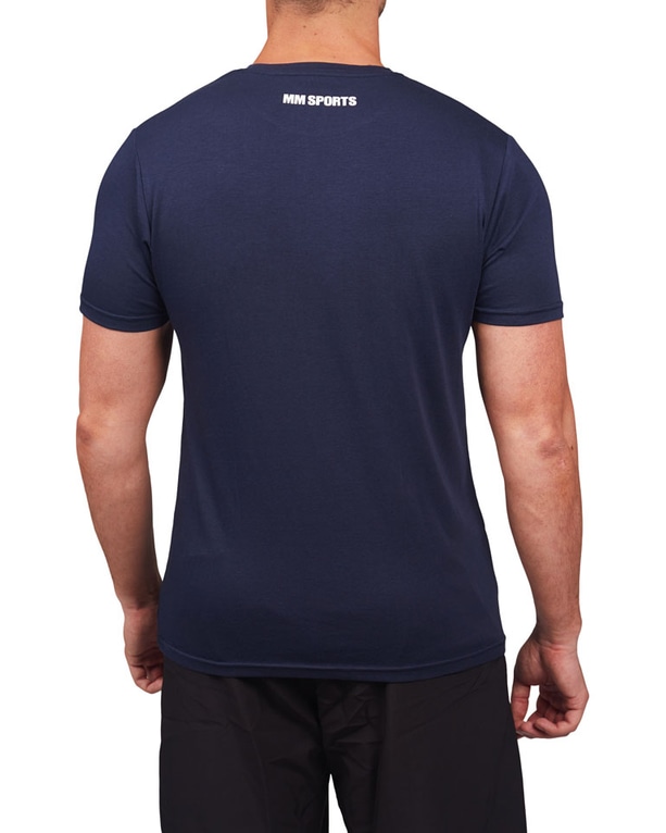 T-paita, jossa on rento tyyli ja istuvuus. T-paidan muoto on suunniteltu korostamaan ylävartaloa, mikä tekee siitä optimaalisen treenin aikana, mutta se sopii tietenkin myös jokapäiväiseen käyttöön. Musta ja tyylikäs MM Sports -logo edessä.